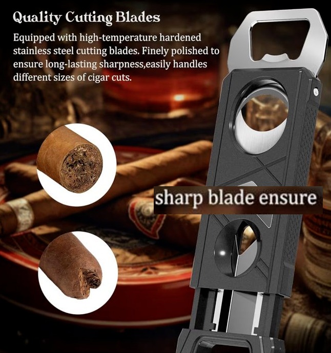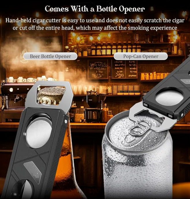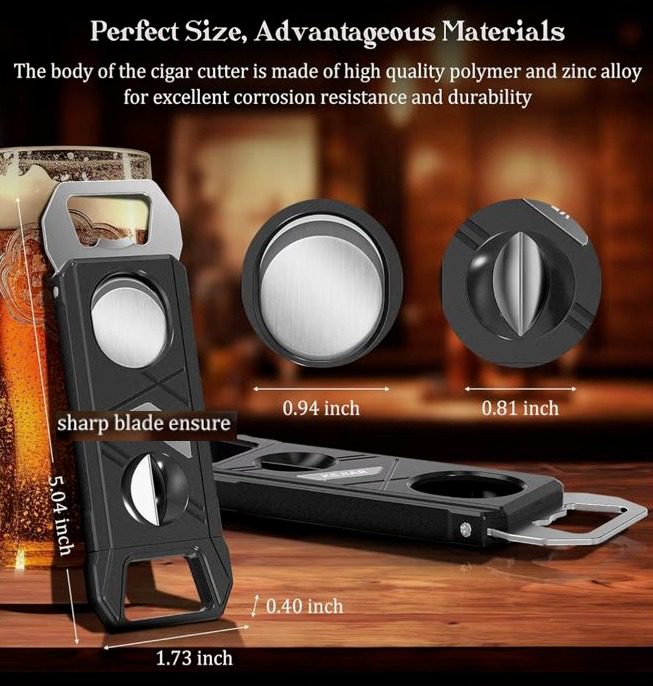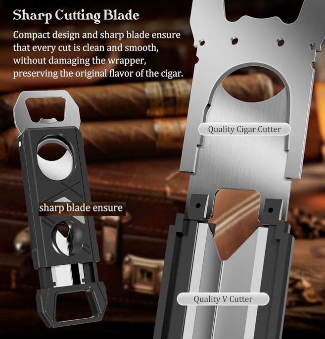 Cigar Cutter, 3-in-1 Cigar Cutter with Stainless Steel Blade V-Cutter, Guillotine and Bottle Opener for Parties Portable Boys Cigar Accessory – 2 Piece Set (Black)