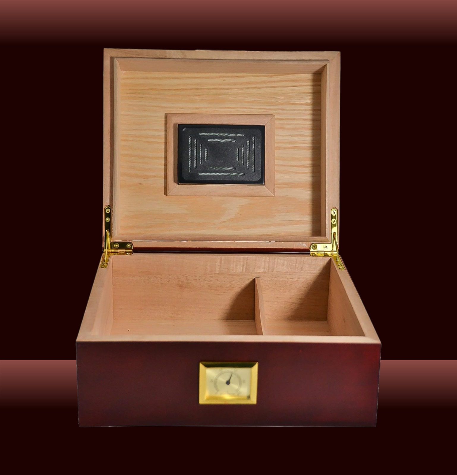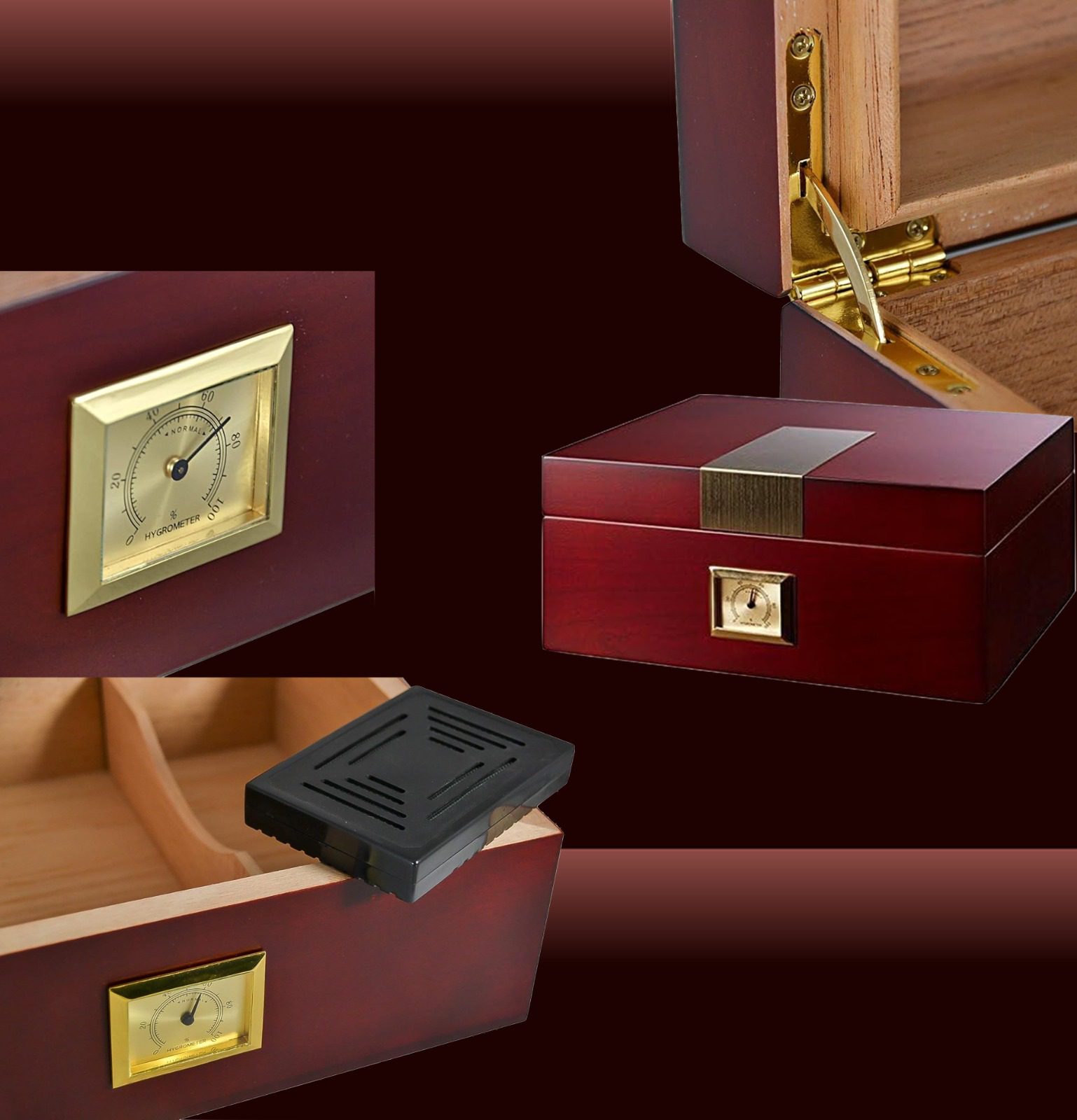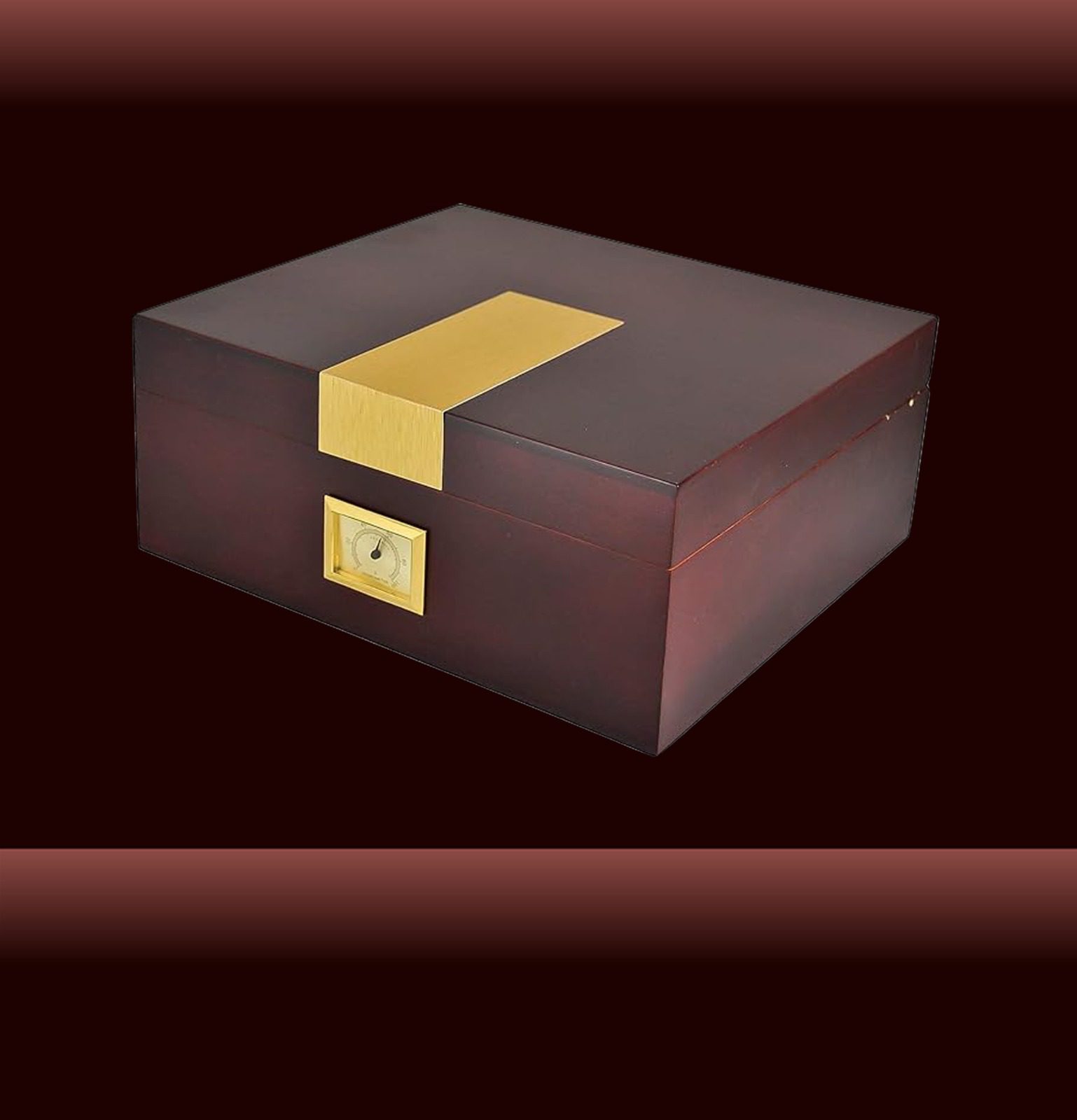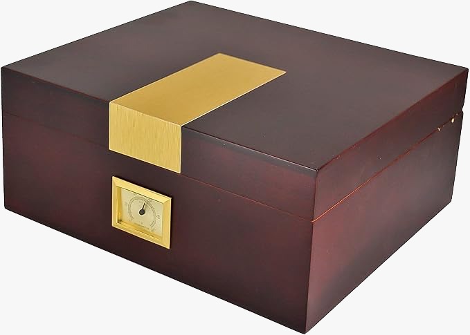 Gold panel Cherry Humidor This Humidor comes with a Humidifier & Hygrometer Cigars Box Set, Durable & Elegant Wood Design, Functional High-End Interior Perfect for 30-50 Cigars