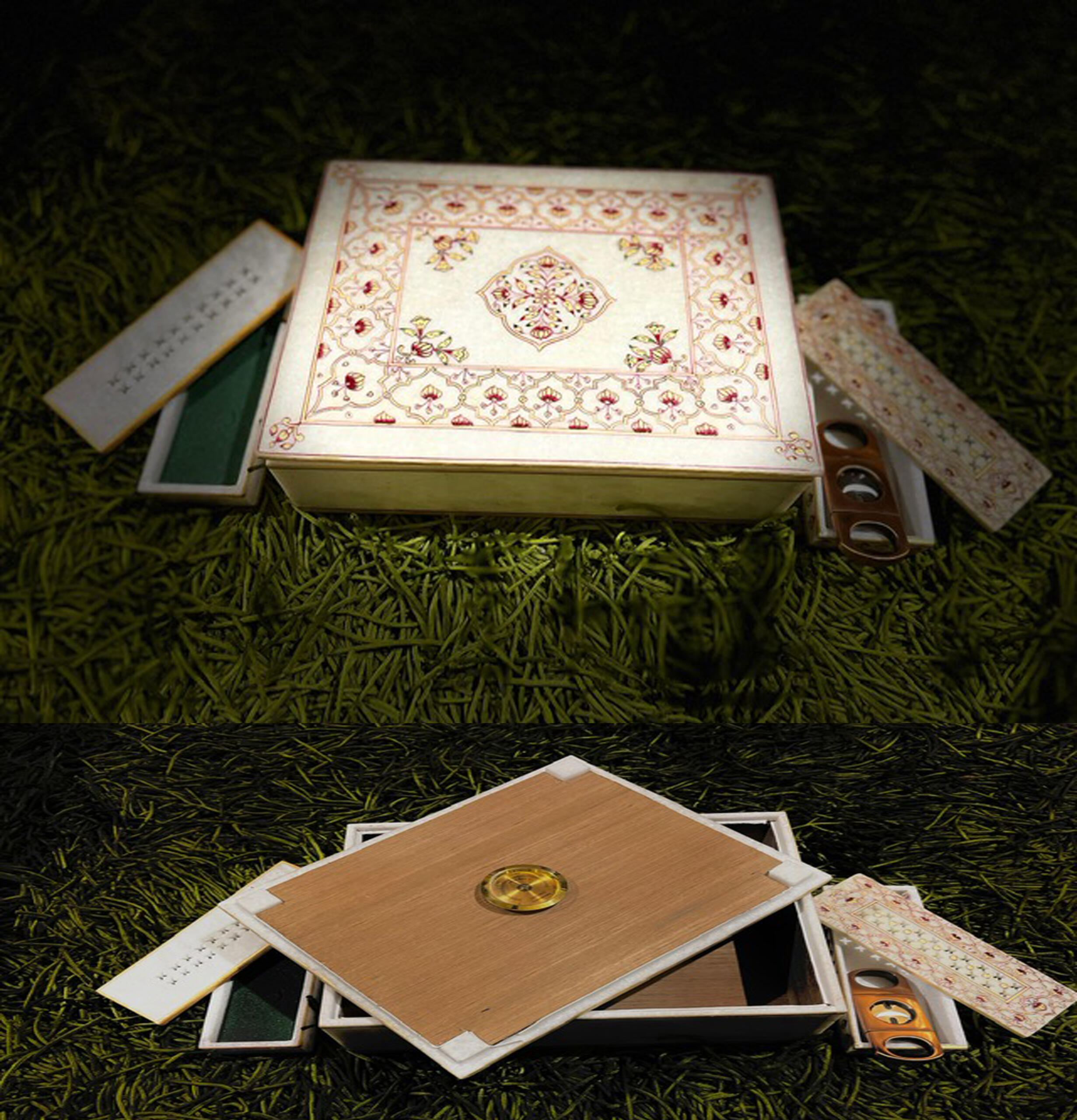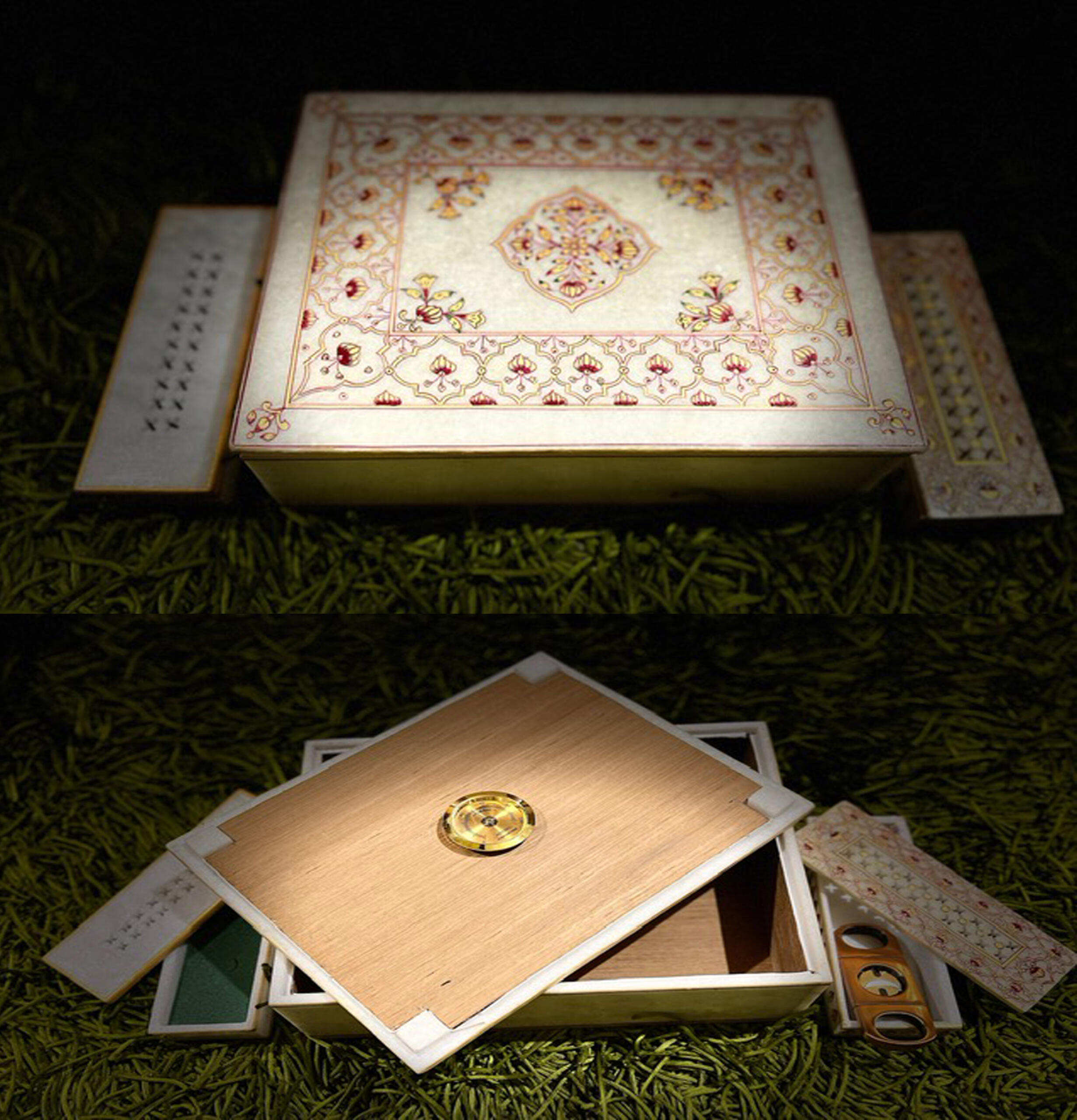 The marble construction provides a luxurious and sophisticated backdrop for the hand-painted artwork, while the interior is carefully designed to preserve the quality and flavor of your cigars.