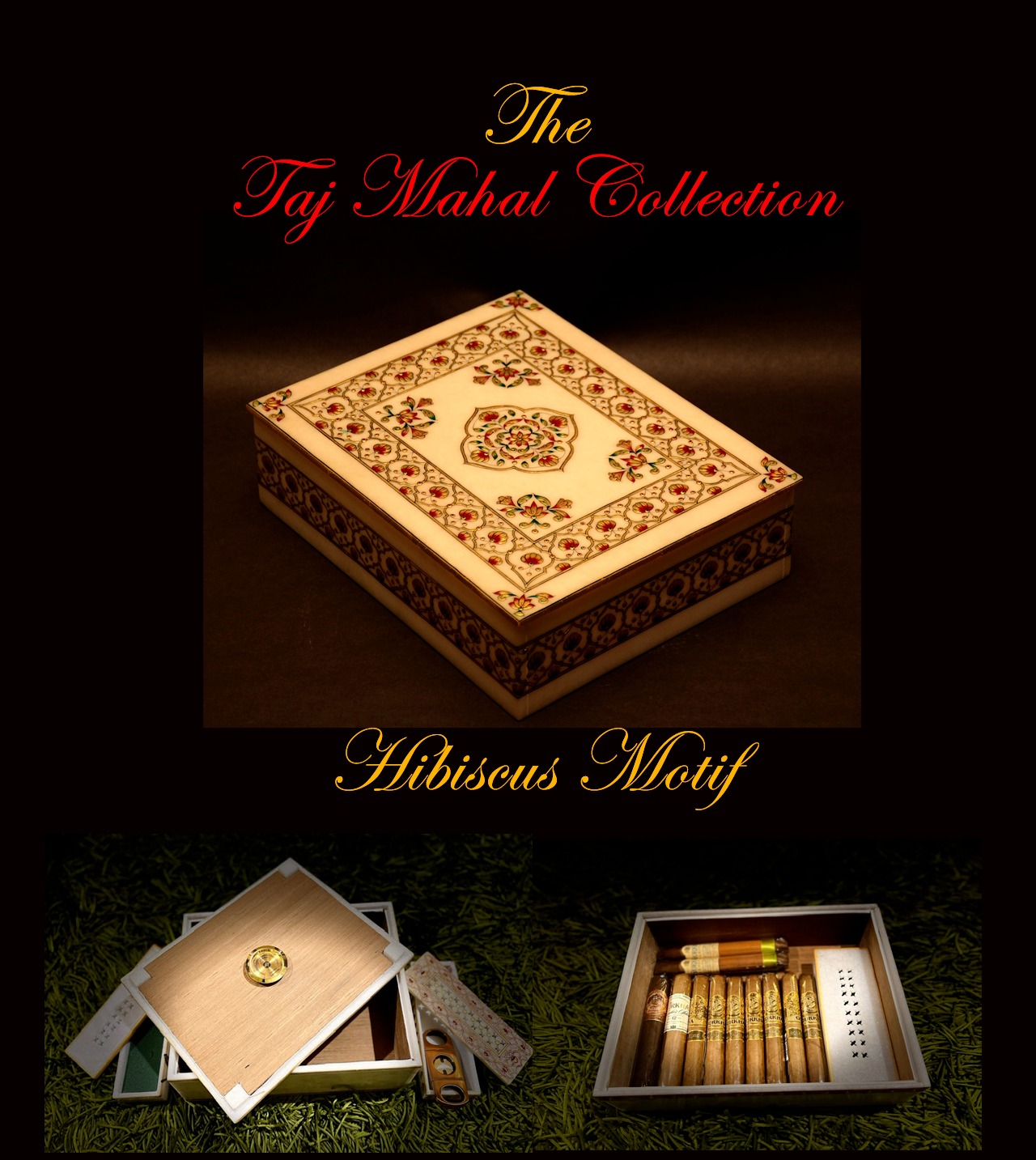 Taj Mahal collection cigars with hibiscus motif — premium designer cigars in decorative box for collectors and gift lovers seeking luxury flavored tobacco.